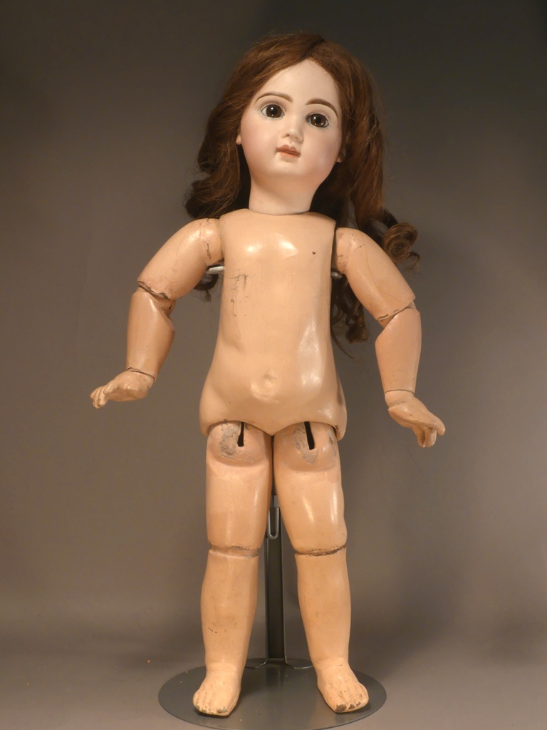 Her Jumeau composition and wood body is stamped in blue on the lower
