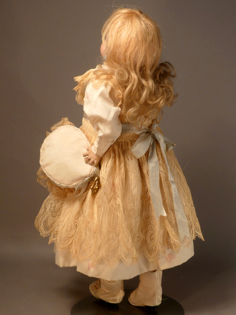 the Jumeau Medaille d’Or stamp on the back. Her blond mohair wig is