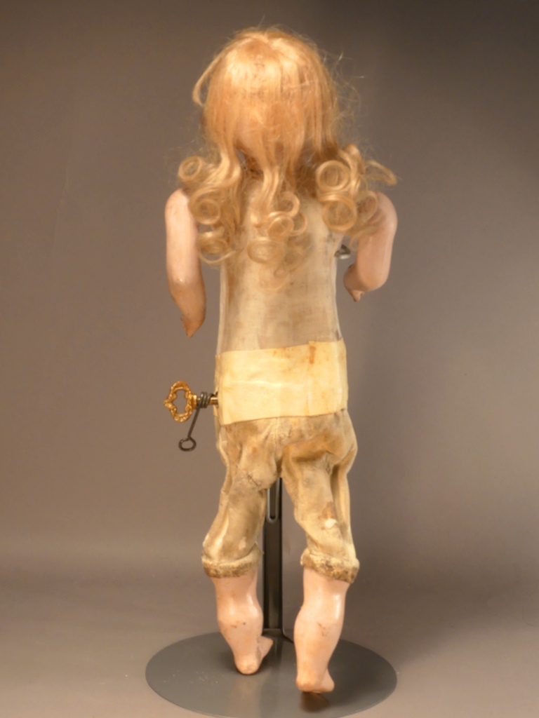bisque head with teeth, that when the original key is wound, and the lever