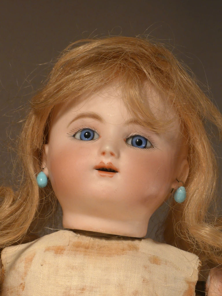 precise, the ears pierced and the wig being the original blond mohair.